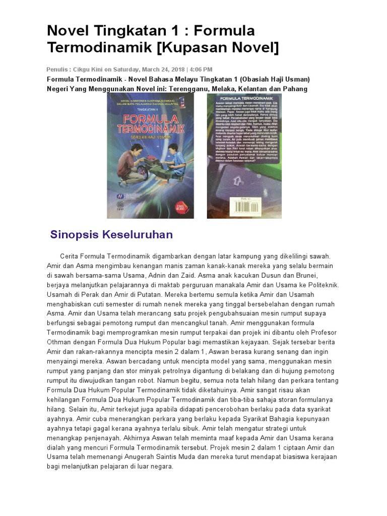Very good notes I read this before my exam. Formula Termodinamik Kupasan Novel Formula Termodinamik - Novel Bahasa Melayu Tingkatan 1 Obasiah Haji Usman Negeri Yang Menggunakan Novel ini. Dia bercita-cita menjadi seorang askar.
